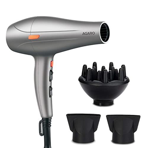 AGARO HD-1124 2400 Watts Professional Hair Dryer with AC Motor, 2 Concentrator Nozzle, Diffuser, Hot and Cold Air, 2 Speed 3 Temperature Settings with Cool Shot