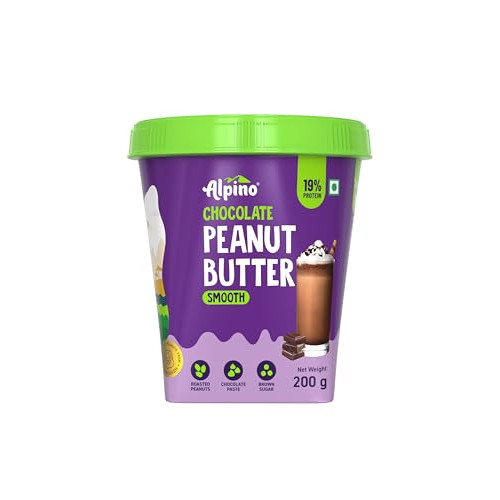 ALPINO Chocolate Peanut Butter Smooth 200 G - Roasted Peanuts, Chocolate Paste, Brown Sugar & Sea Salt - 24g Protein, Gluten Free Plant Based Peanut Butter Creamy at just Rs.99 only