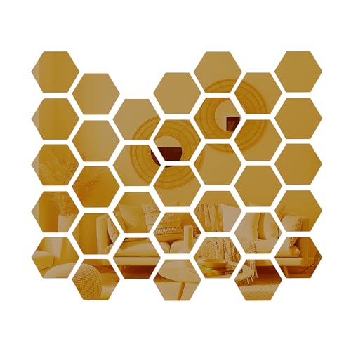 Amazon Brand - Solimo Hexagon Decorative Mirror Stickers for Wall | Wall Mirror Stickers | 3D Acrylic Stickers Wall Stickers