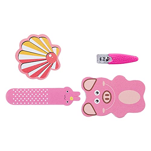 Amazon Brand - Solimo Manicure and Pedicure Kit with Three Nail Files and Nail Clipper, Pink, Pack of 4
