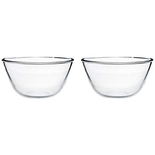 Amazon Brand - Solimo Mixing/Serving Borosilicate Glass Solid Bowl Set (2 pieces, 1600ml), Transparent