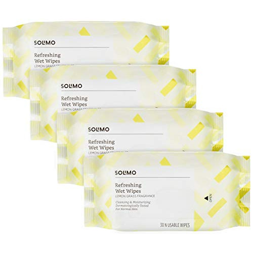 Amazon Brand - Solimo Refreshing Wet Wipes, Lemon Grass - 30 Wipes (Pack of 4)