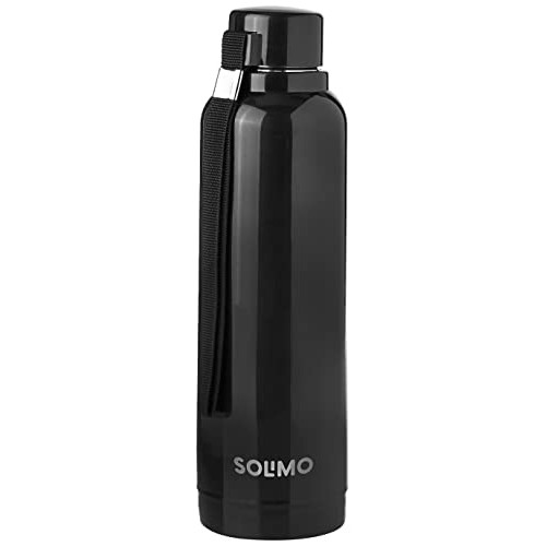 Amazon Brand - Solimo Stainless Steel Water Bottle with Inner Steel & Outer Plastic, PU Insulation, 700 ml, Black at just Rs.382.44 only