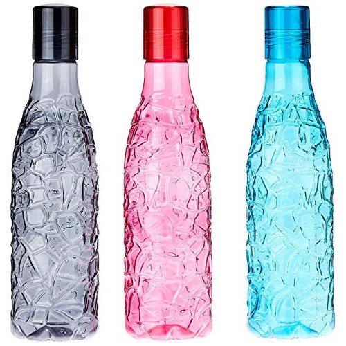 Amazon Brand - Solimo Textured Plastic Water Bottles, Set of 3, Multicolour, 1L Each