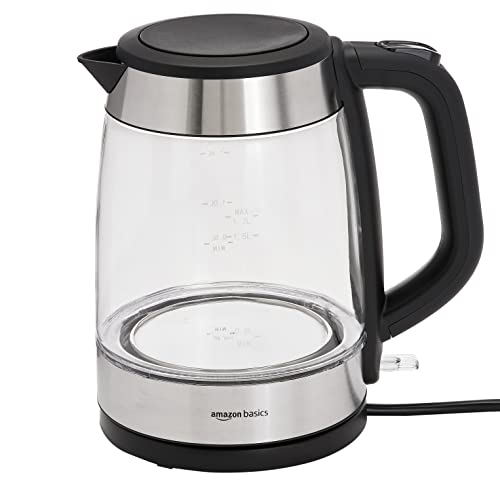 Amazonbasics 2200W Kettle | Sleek Design With 1.7L Borosilicate Glass Body, Led Illumination & Heat Resistant Handle