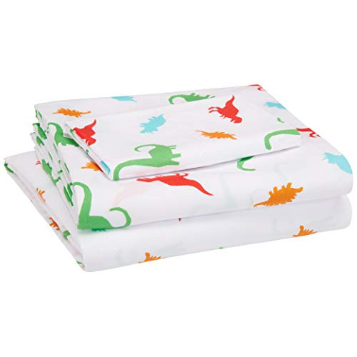 AmazonBasics Kid's Sheet Set - Soft, Easy-Wash Microfiber - Single, MultiColor Dinosaurs - with Pillow Cover