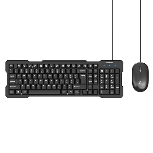 Ambrane Wired Keyboard and Mouse Combo with Instant USB Plug-and-Play Setup, 104 Key, 12 Shortcut Keys and 3 Button Design, 1600 DPI Optical Sensor Mouse (Keyflex & Sliq 2 Wired)