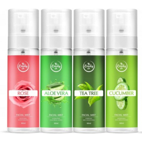 The Beauty Co. Mist Pack of 4(Rose Mist, Aloe Vera Mist, Tea Tree Mist, Cucumber Mist) Women(400 ml) at just Rs.665 only