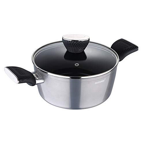 Bergner Carbon TT Forged Aluminium Non-Stick Casserole with Glass Lid & Induction Base (28 cm, 6 Liters, Metallic Grey)