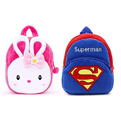 Blue Tree Kids School Bag Soft Plush Backpack Cartoon Bags Mini Travel Bag Girls Boys Toddler Baby Konggi Rabbit & Superman at just Rs.261.32 only