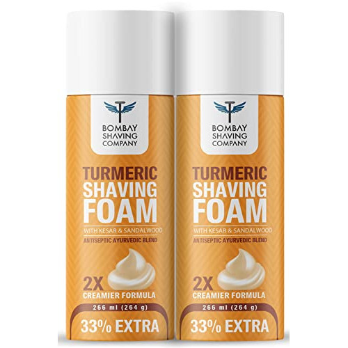 Bombay Shaving Company Turmeric Shaving Foam (Pack of 2),266 ml (33% Extra) with Turmeric & Sandalwood