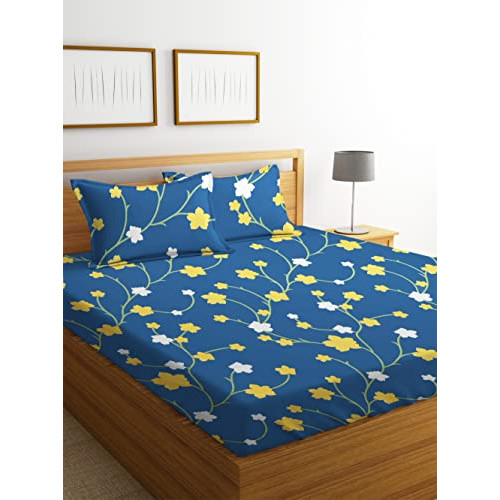 BSB HOME 100% Microfiber 220 TC Flower Printed King Size Bedsheet with 2 Pillow Covers, (90 x 100 Inches, Light Purple and White) at just Rs.199 only