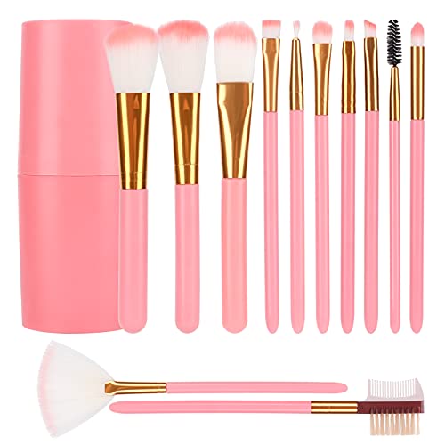 CALAILIS Makeup Brush,Professional Foundation Brush 12 PCS Makeup Brush Kit For Face Makeup Brush Set(Pink)