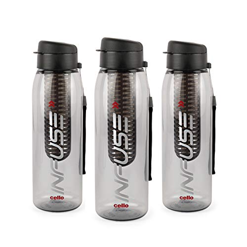 Cello Infuse Plastic Water Bottle Set, 800ml, Set of 3, Black at just Rs.373 only