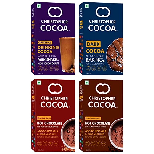 Christopher Cocoa Powder, Drinking Chocolate Cocoa, 100g, Dark Cocoa, 100g, Hot Chocolate with Dark Chocolate Buttons 200g, Hazelnut Mocha Hot Chocolate with Dark Chocolate Buttons 200g at just Rs.399 only