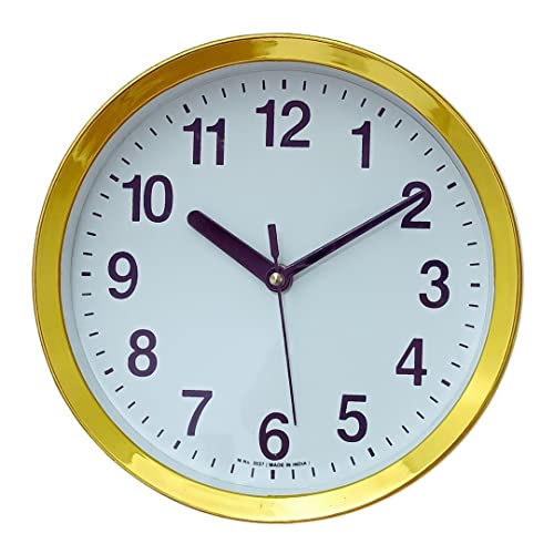 CHRONIKLE Elegant Round Silver Color Plastic Case White Dial Analog Home/Office Decor Wall Clock (Size: 20 x 4.5 x 20 CM | Color: Golden | Weight: 278 grm) at just Rs.279 only