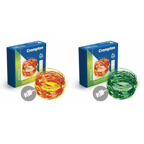 Crompton Galaxy Decoration Copper USB Powered String Fairy Lights with 100 Led Light (10 Meters, Warm White & Green, Pack of 2) at just Rs.298 only