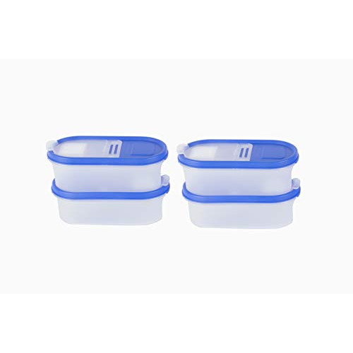 Cutting EDGE Flip-Top Modular Dispenser Containers Oval Set for Rice, Dal,Atta, Flour, Cereals, Pulses, Snacks, Stackable 535 ML Set of 4 - Blue Lids (Free Plain Lids Extra at just Rs.263.07 only