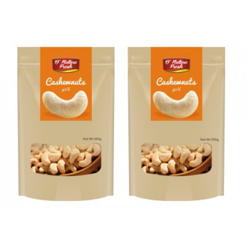 D NATURE FRESH RAW CASHEWS ,1KG (500g x 2) Cashews(2 x 0.5 kg) at just Rs.799 only