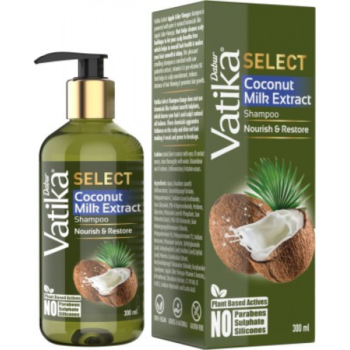 Dabur Vatika Select Coconut Milk Extract Shampoo|Nourish & Restore|No Parabens, Sulphate & Silicones(300 ml)
