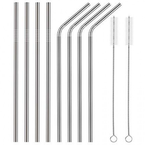 Decorcrafts Stainless Steel Straws For Drinking with Brushes Pack of 10Pieces (4 Bent + 4 Straight + 2 Brushes), Silver With Carry Pouch at just Rs.199 only
