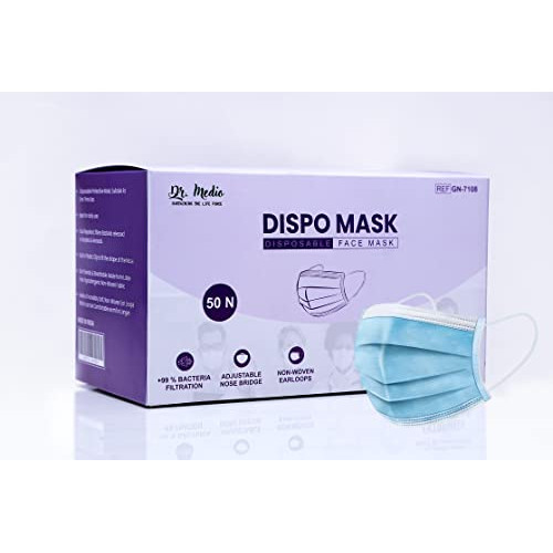 Dr. Medio Dispo Mask 3 Ply Mask With Softest Ear Loops Blue Mask .(Pack of 1) 50 Pcs, mask