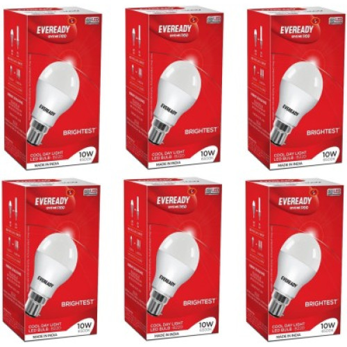 EVEREADY 10 W Standard B22 LED Bulb(White, Pack of 6) at just Rs.454 only