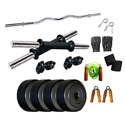 Facto Power Home Gym 40 Kg P.V.C Weight Plates (5 Kg X 4 = 20 Kg + 3 Kg X 4 = 12 Kg + 2 Kg X 4 = 8 Kg) with Dumbbell Rods, Curl Rod & Gym Gloves at just Rs.1635.7 only