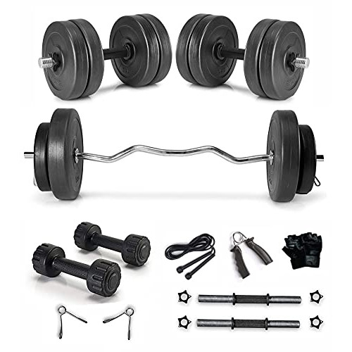FitBox Sports 8 Plates Home Gym Set with Curl Rod, Dumbbells & Gym Accessories 16 Kg (2kg x 8), Black at just Rs.1048 only