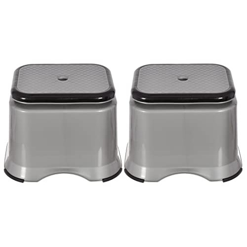 Fun Homes Ultra 10 Multiuses Portable, Lightweight, Strong, Durable Plastic Bathroom/Step/Sitting Stool, Patla- Pack of 2 (Grey)-46FH0147, Standard