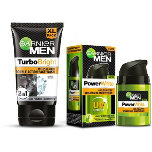 Garnier Men Brightening Combo|Turbo Bright Facewash, 150 gm + Power White Moisturiser, 50 gm (Pack of 2 Prodcuts) Face Wash(200 g) at just Rs.320 only