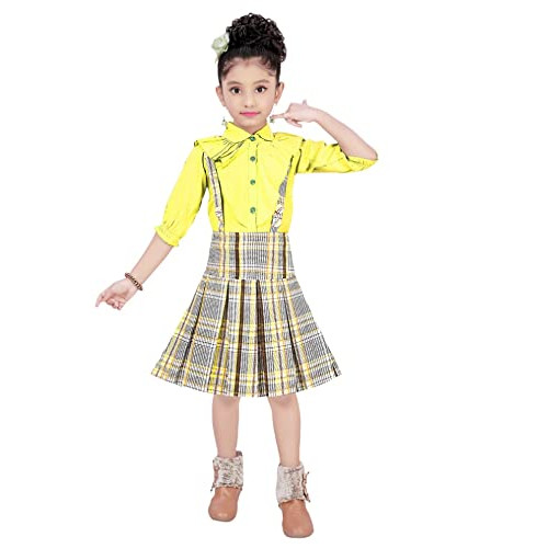 GBABY Girls Solid Top And Plaid Print Dungaree Skirt For Girls & Toddler at just Rs.390 only