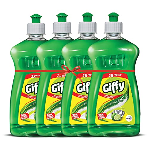 Giffy Green Lime & Active Salt Concentrated Dish Wash Gel, 500ml (Pack of 4) at just Rs.160 only