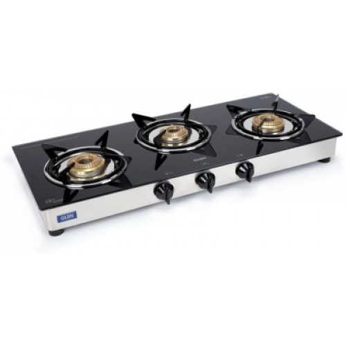 GLEN Rapid Glass SS 3 Burner LPG Stove Glass Manual Gas Stove(3 Burners) at just Rs.2464 only