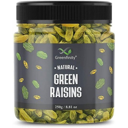 GreenFinity Premium Seedless Green Raisins | Dry Fruit Kishmish For every occasion and gift Raisins(250 g) at just Rs.99 only