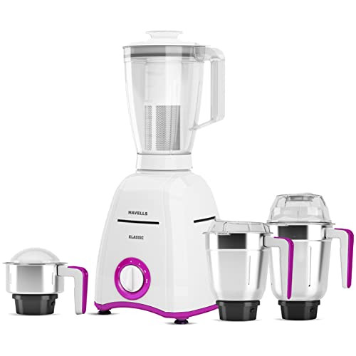 Havells Klassic 750 watts 4 Jar Mixer Grinder with 304 SS Blades, Large Size SS Jars, Break Resistant Polycarbonate Transparent Jar Lids With Twist & Lock Mechanism