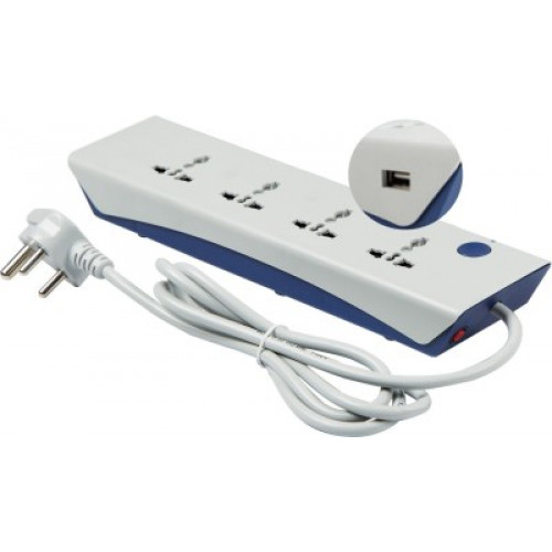 HAVELLS Royalstar 4+1 spikeguard ( 2 mtr)-10A, USB 2.1A 4 Socket Extension Boards(White, Blue) at just Rs.602 only