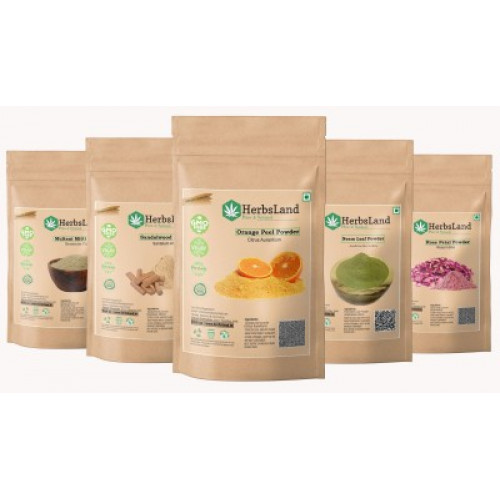 HerbsLand 100% Bio Multani Mitti Sandalwood (Chandan) Orange Peel Neem Leaf Rose Petals Powder at just Rs.235 only
