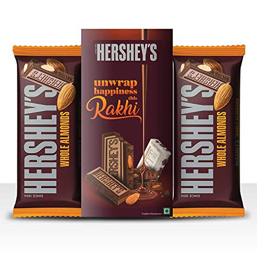 HERSHEY'S Bar - Rakhi Gift (Almond Bar 100 gm Pack of 2 + Rakhi ) at just Rs.180 only