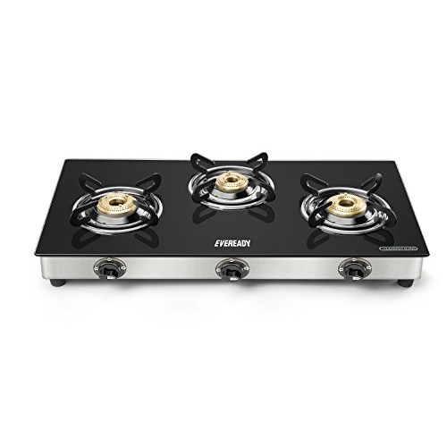 Eveready GS TGC3B Stainless Steel 3 Burner Glass-Top Gas Stove (Black) at just Rs.2549 only