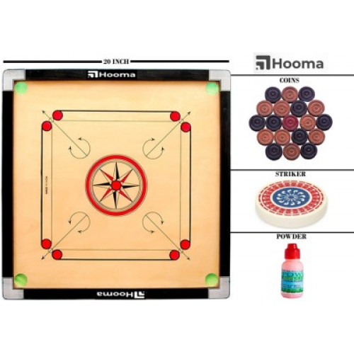 • Deals, Discounts & Offers on Auto & Sports - HOOMA 20 INCH Wooden Round Pocket Carrom with Coins, Striker and Carrom Powder 50 cm Carrom Board(Multicolor)