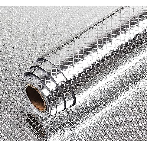 Inllex Aluminum Foil Self Adhesive DIY Kitchen Anti Oil Contact Paper Peel Stick Wall Stickers Waterproof Wallpaper Decal Stove Cabinets Counter Tops Sticker Drawer Shelve Liner Silver