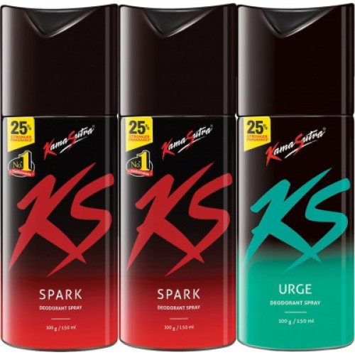 Kamasutra Spark and Urge Deodorant Spray - For Men(450 ml, Pack of 3) at just Rs.256 only
