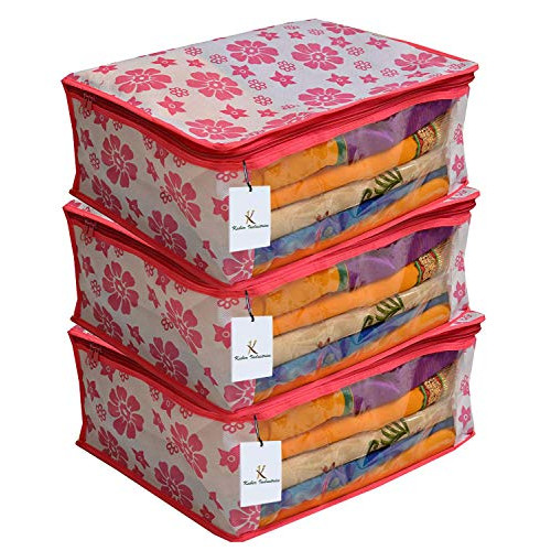 Kuber Industries 3 Piece Non Woven Saree Cover Set, Pink at just Rs.189 only