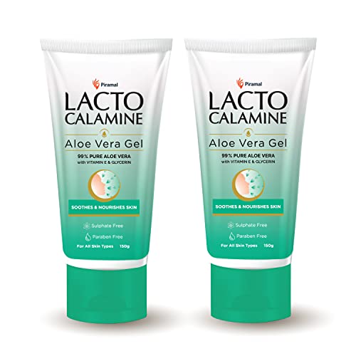 Lacto Calamine Aloe Vera Gel with 99% Pure Natural Aloe Vera, Vitamin E and Glycerin, No Parabens, No Sulphates (150 g) - Pack of 2 at just Rs.270 only