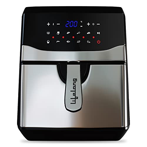 Lifelong Digital Air Fryer LLHFD722, 7.5 Litre XL LED Touch Screen, 12 Preset Cooking Modes, 1400 W, 85% Fat Reduced, 1-Year Warranty (Silver & Black