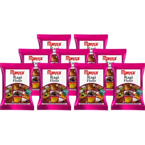 Manna Plain Ragi Flour - 1.8kg (200g x 9 Packs) | 100% Natural | Rich in Vitamins, Fibre and Proteins(1800 g, Pack of 9) at just Rs.129 only