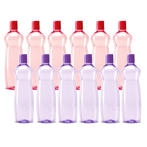 MILTON Pacific 1000 Pet Water Bottles, 1 Litre Each, Set of 12, Purple and Red | BPA Free | Leak Proof | Office Bottle | Gym Bottle | Home | Kitchen | Travel Bottle | Hiking | Treking | Reusable