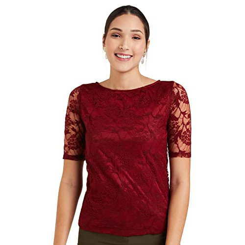 Miss Olive Women Top (Moss19Tp30-01-143_Maroon_S_Maroon_S)