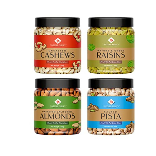 Nature Purify Dry Fruits Combo Pack - (200g * 4) 800g (Almonds, Cashews, Pistachios, Raisins) - All Premium.